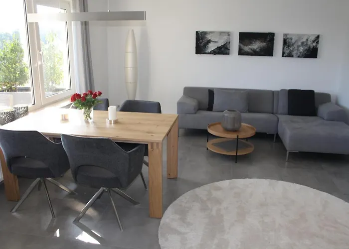 Die Apartments bietet einen Wohnbereich, eine Terrasse und eine Küche und Annehmlichkeiten wie eine Waschmaschine. Die Design Ferienwohnung Am Wald 2 ab April 2026 mit noch größerer und neuer Terrasse verfügt über eine getrennte Toilette und eine Dusche für Ihren Komfort. Ein Haartrockner, ein Wäschetrockner und Handtücher sind ebenfalls vorhanden.
